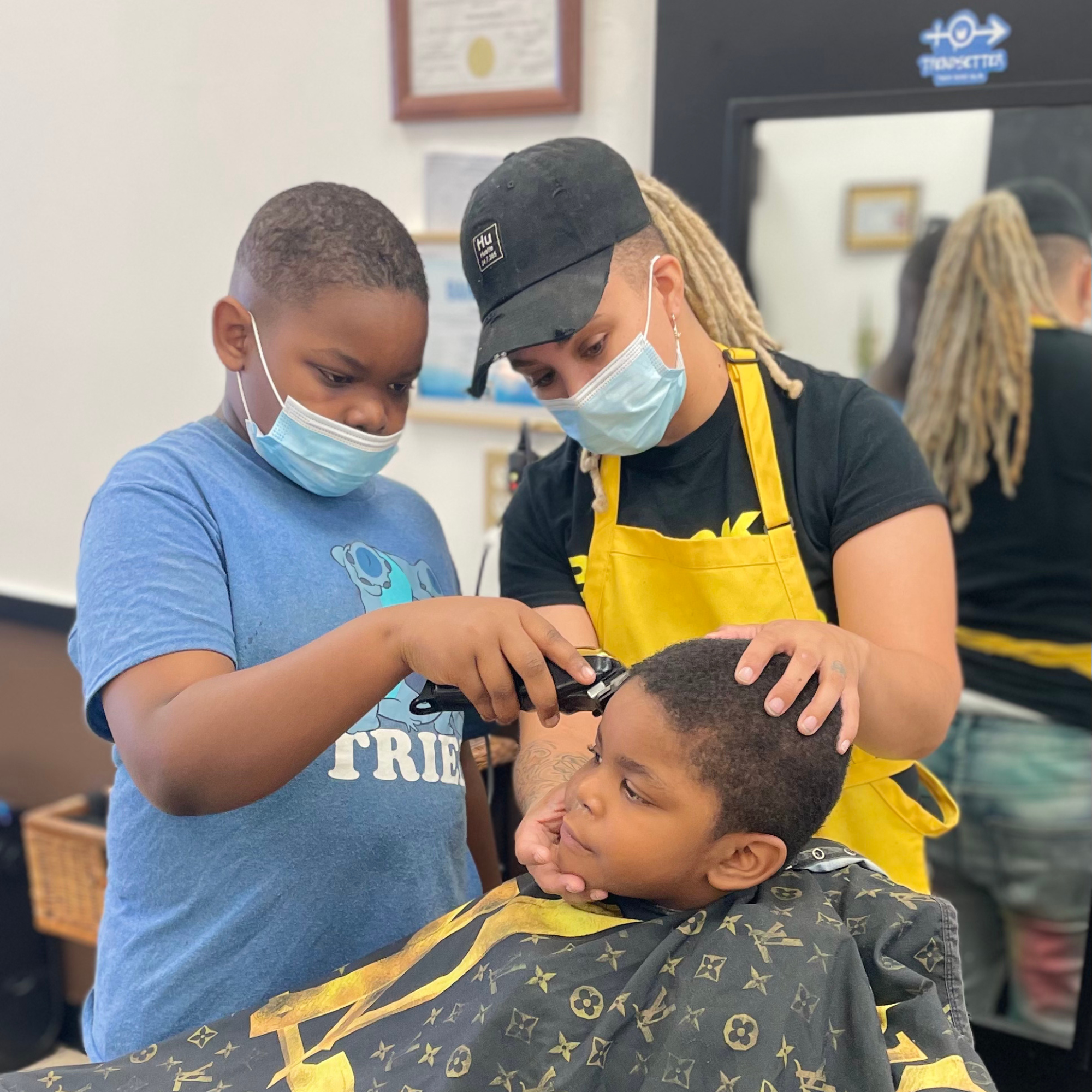 Through our youth barbering program, we offer a hands on course that combines barbering skill building with social and emotional learning, helping young people build confidence, focus, and emotional regulation in a supportive setting. This program focuses on skill building, mentorship, and workforce exposure. The program introduces young people to barbering as a trade and potential career pathway while teaching professionalism, and safety, client communication, consistency, customer service, and pride in their work. The program is trauma informed and relationship centered, meeting young people where they are and supporting both personal and skill development.