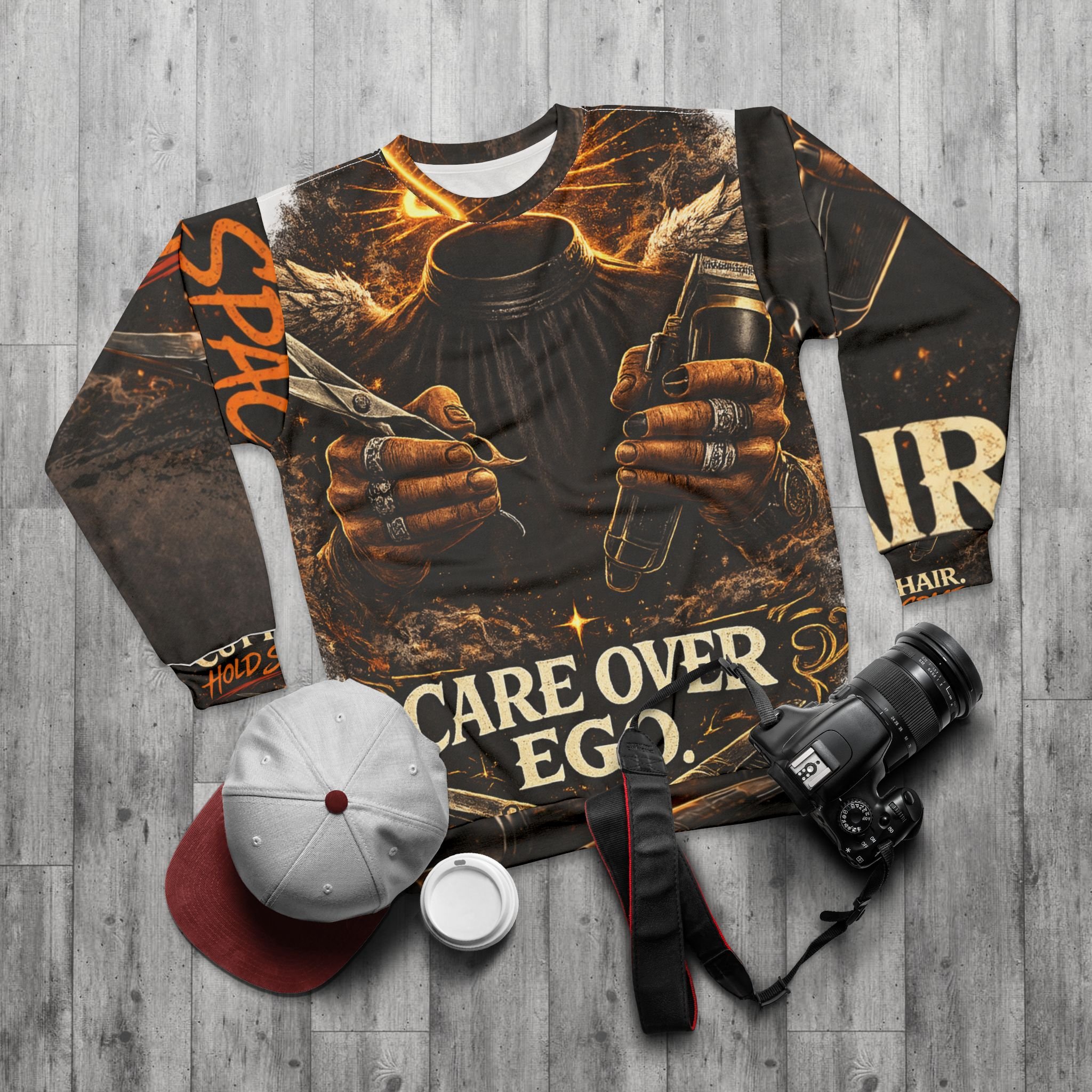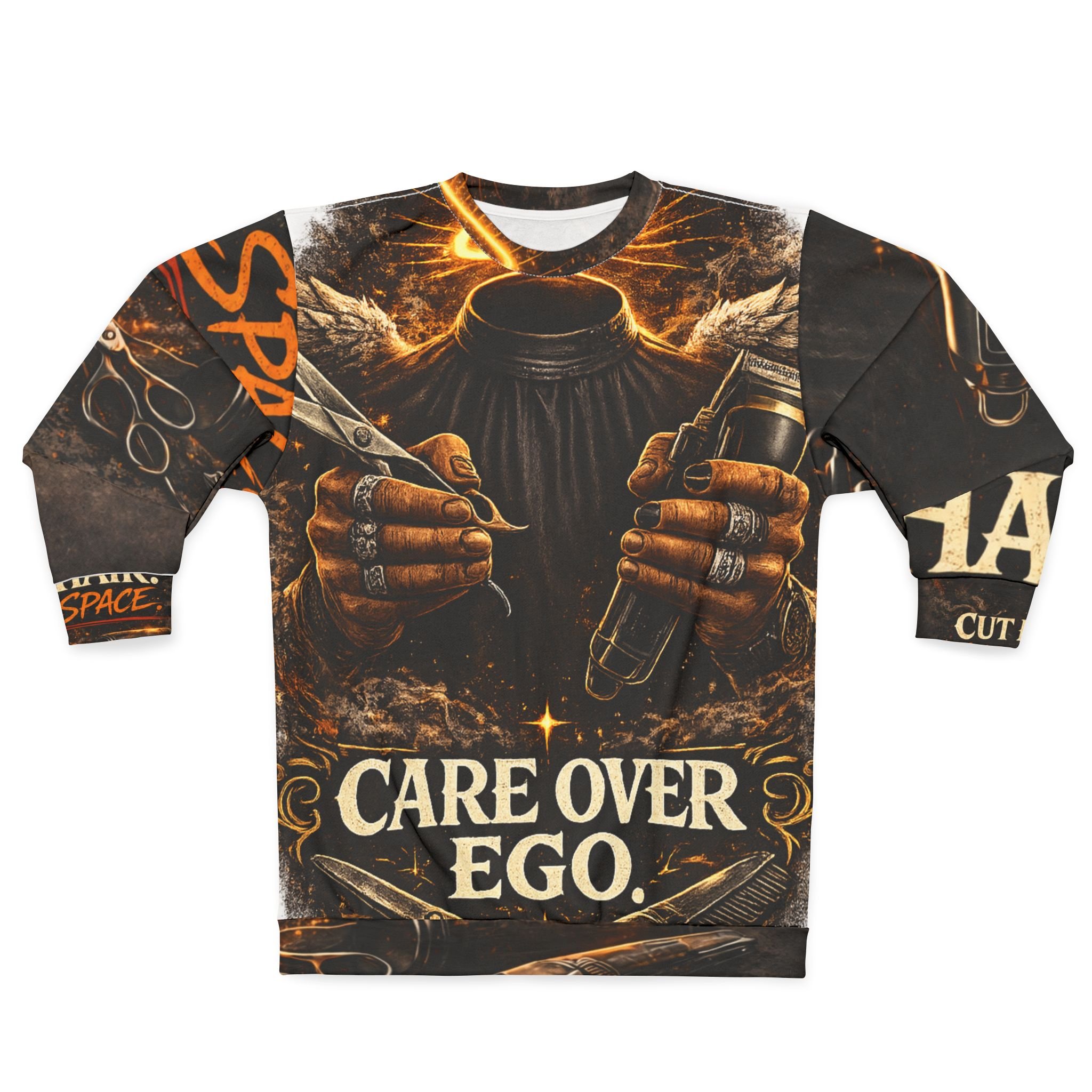 Care Over Ego Barber Sweatshirt — Barber Hairstylist Salon Crewneck
