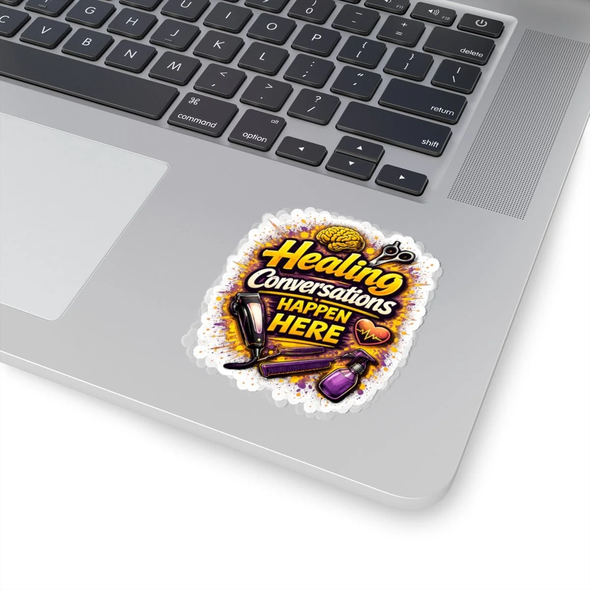 Healing Conversations Happen Here Sticker — Barber Stylist Laptop Decal